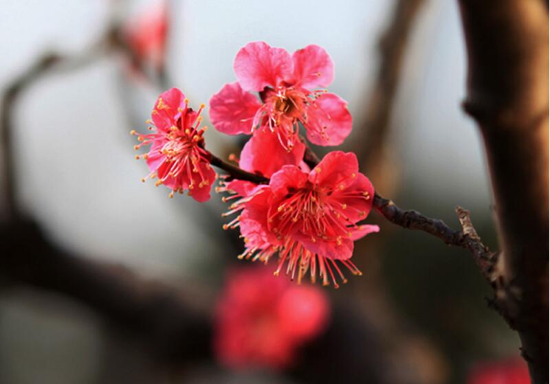 紅梅花是梅花當中的一種類型,梅花是分為多種類型的,其作用非常高,可以當做園林綠化使用,紅梅花是屬于一種常綠喬木,根據不同的品種有著不同的成長高度,平均高度是在4米到10米之間,每年的果期是在5月份6月份下面是小編為大家找的紅梅花圖片大全