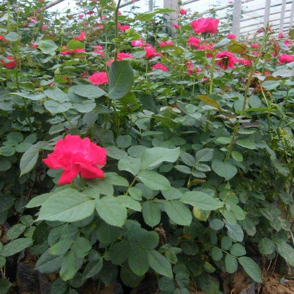 定植株距。大花月季栽培的株行距依栽培目的不同而異。用于育種或科研的品種圃常采用的株行距為150厘米×80 厘米。栽種以前需對幼苗進行一次修剪,剪掉損傷枝條、病枝、弱枝,受損或過長的根系也應剪除。修剪后給傷口涂抹愈傷防腐膜,使其傷口快速愈合。