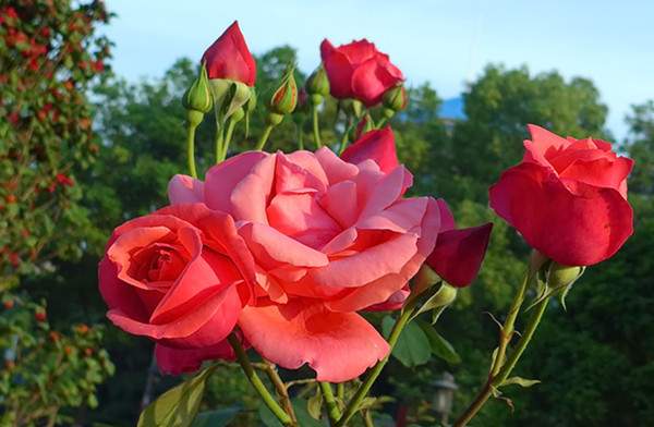 水肥管理。大花月季喜肥,尤其是喜有機肥,如廄肥、堆肥等。大花月季花期長,在其生長過程中應注意追施化肥,以求速效,保持充足的水肥外,在花蕾期噴施花朵壯蒂靈,可促使花蕾強壯、花瓣肥大、花色艷麗、花香濃郁、花期延長。