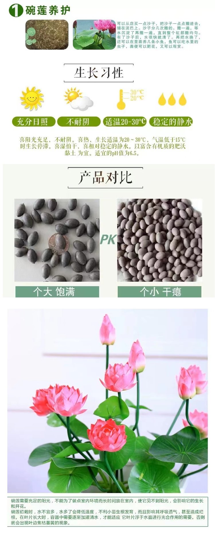 選擇健康、成熟的蓮花種子。成熟的種子會呈黑色或深褐色,并且具有完整的種皮和胚芽。準備好種子后,將其浸泡在清水中,大概2-3天,每天更換水,直到種子表面的外殼軟化。