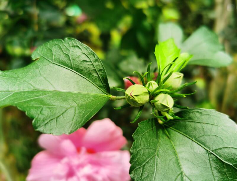木槿花的葉子長度從三厘米到十厘米不等,它的寬度在兩厘米到四厘米不等,它的葉片呈現(xiàn)出的是菱形到三角狀卵形狀態(tài),葉子也有深淺不同的三裂狀態(tài),也有的可能呈現(xiàn)出的是不裂狀態(tài)。