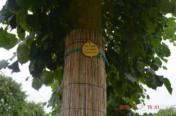 個別樹木表皮較薄的品種,纏繞葦箔防止樹桿日灼,同時也防止野生動物危害。