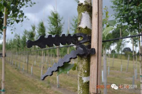 行間拉直固定樹木,采用橡膠扣固定,保護樹木表皮不會受損并可多次使用。