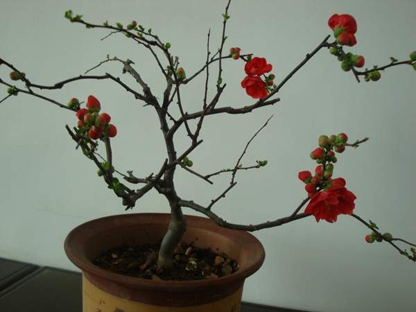 貼梗海棠盆景造型獨(dú)特,看完了這么多的盆景造型,是不是覺得太神奇了;自然的生長再加上人為巧妙的攀扎整形,一盆盆不一樣的造型就制作出來了。