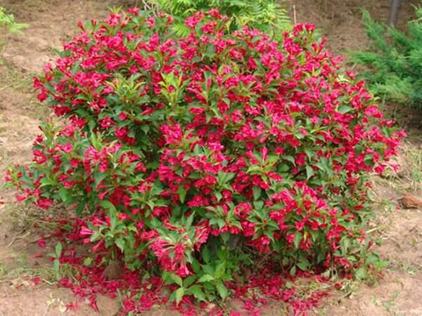 紅王子錦帶花嫩枝淡紅色,花朵密集,花冠胭脂紅色,艷麗悅目;