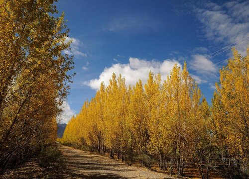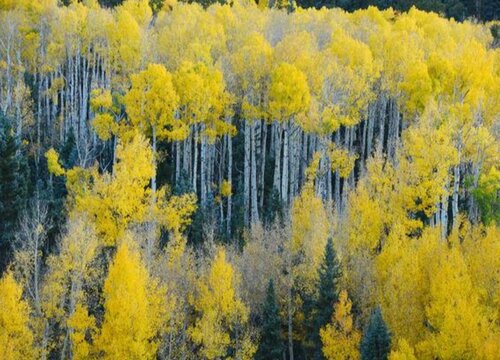 白楊樹的葉子的顏色隨著季節變化而變化,在初秋時期還是綠色的,而到了秋末冬初落葉前,它的葉片就變成黃色的。