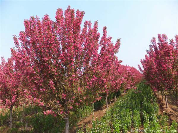 海棠花姿瀟灑,楚楚動人,花開似錦,自古就是雅俗共賞的花卉。它栽植方式多樣,可孤植成一片觀賞,也可栽植于溪畔旁,清風吹過,它的花瓣隨風飄落在水面上,如靜如動,妙不可言。正是如此高的觀賞性使得海棠被廣泛的應用到城市綠化建設當中,目前我們公司有批3到10公分的絢爛海棠準備出售,全部都是花大色艷的精品苗,期待您的到來!